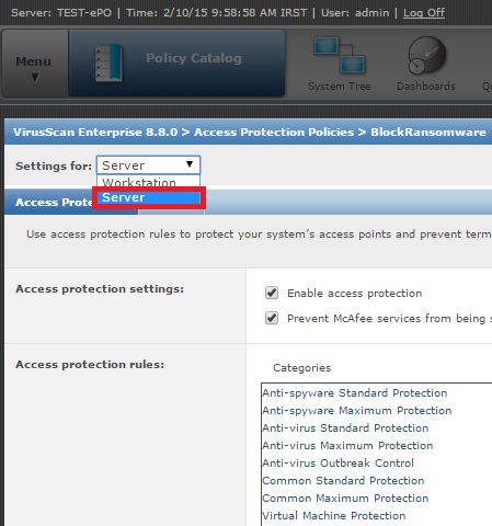3- در قسمت Category نیز گزینه  Access Protection Policies را انتخاب کنید.