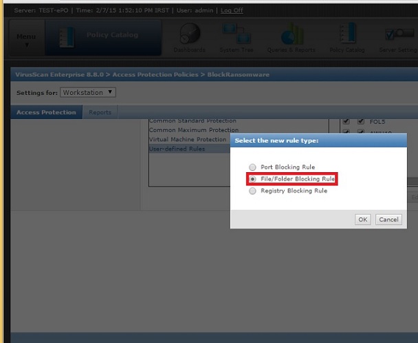 8- گزینه File/Folder Blocking Rule را انتخاب نموده و OK را بزنید.