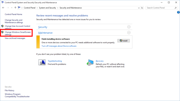 با مراجعه به Control Panel > System and Security > Security and Maintenance > Change Windows SmartScreen settings می توان این بخش را غیر فعال کرد.
