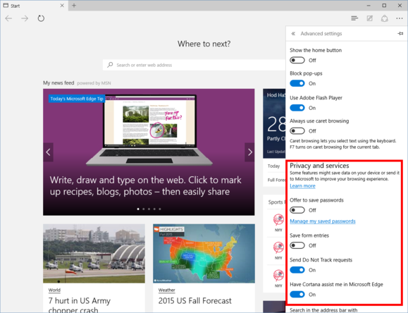اگر از مرورگر جدید مایکروسافت استفاده می کنید شاید بخواهید برخی بخش های آن را از جمله امکان یکپارچگی با Cortana و پیش بینی کلمات تایپ شده و به طور کلی هر قابلیت که سبب ارسال اطلاعات به سرورهای مایکروسافت می شود، غیرفعال کنید.