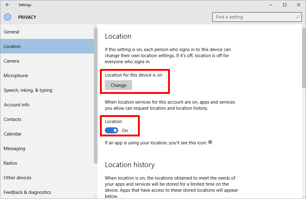 در Settings > Privacy > Location می توان تعیین کرد که آیا برنامه ها اجازه دارند که از موقعیت مکانی کاربر برای ارائه سرویس های محلی و ویژه خود استفاده کنند یا خیر.