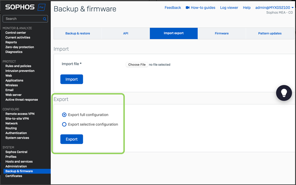 2. به قسمت Backup & Firmware > Import / Export بروید.